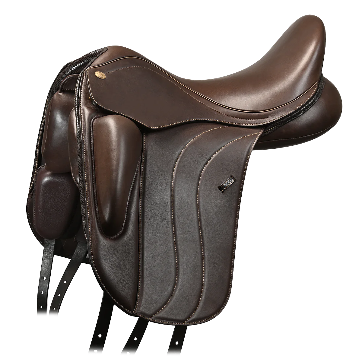 Ein wesentlicher Bestandteil des Petrus ist das wissenschaftlich entwickelte Performance Panel. Dieses speziell geformte Sattelkissen reduziert Druckspitzen, verteilt die Last gleichmäßiger und verbessert nachweislich die Bewegungs- und Schulterfreiheit sowie die Gangsymmetrie des Pferdes. Bewegungstests und Pressure-Mapping-Analysen zeigen eine freier schwingende Rückenlinie und ein losgelasseneres, gleichmäßigeres Gangbild.